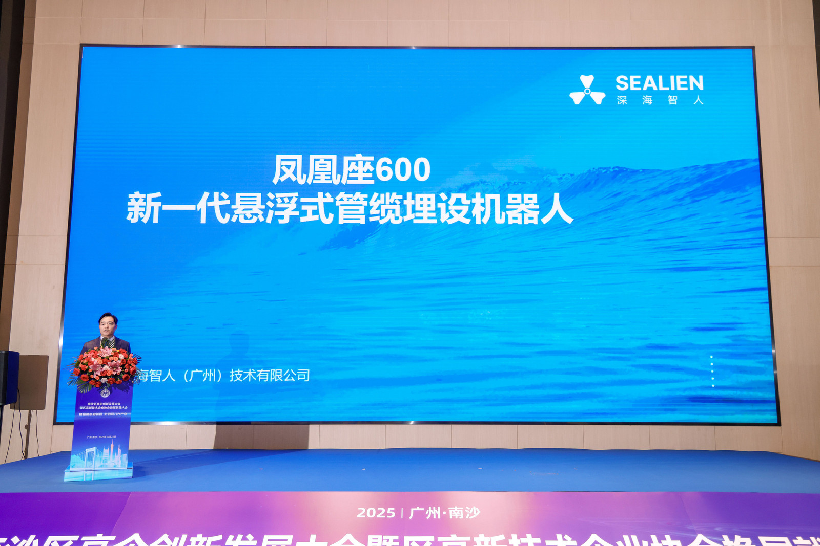 会场内,大会还特设深海智人“凤凰座”悬浮式海底管缆埋设机器人、番高领航水面保洁机器人“FA-AC智洁星”、华科尔无人机消防车灭火作战系统新品发布环节,集中展示了南沙企业在高端装备领域的创新实力。